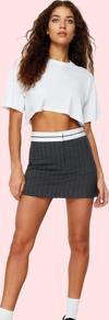 Gri, Çizgili, Dokuma, Poliviskon, Yüksek Bel, Kemerli, Mini, Dar Paça, Şort Etek, Yazlık, Cepsiz, 65% Polyester, 33% Viskoz, 2% Elastan