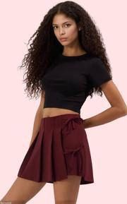 Yaz aylarının vazgeçilmezi olan bu bordo mini şort etek, şıklığı ve rahatlığı bir araya getiriyor. Finike dokuma kumaştan üretilen etek, yüksek bel tasarımıyla kusursuz bir siluet oluşturmanıza yardımcı olur. Günlük kombinlerinizde rahatlıkla kullanabileceğiniz bu şort etek, özel günlerinizde de stilinize farklı bir hava katabilir. Düz desen ve dar paçası ile her vücut tipine uyum sağlar. Kısa boyu sayesinde yaz sıcağında serin kalırken, şık görünümünüzden ödün vermezsiniz. Eteğin yan kısımlarındaki fiyonk detayı ise şıklığınıza ayrı bir şıklık katar. Makinede yıkanabilir özelliği ile de pratik kullanım sunar. Türkiye'den üretilmiş olup, yüksek kaliteli malzemeden üretilmiştir.