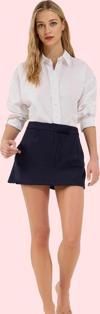Bu sezonun trend parçası, yüksek belli lacivert mini şort etek ile tanışın! Yüksek kaliteli Finike dokuma kumaşıyla üretilen bu şık etek, hem rahatlığı hem de şıklığı bir arada sunuyor. Kısa boyuyla sıcak yaz günlerinde serin kalırken, şıklığıyla da her ortamda dikkatleri üzerinize çekeceksiniz. Yüksek bel tasarımı sayesinde kusurları gizlerken, vücut hatlarınızı da ön plana çıkarır. Günlük hayatta rahatlıkla kullanabileceğiniz bu etek, farklı tarzlara kolayca uyum sağlar.