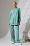 Moda Kadın Mint Yeşili Mevsimlik Penye Alt Üst Spor ve Rahat Tesettür Takım
