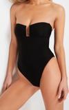 Kadın Moda Atma Kap Askılı Brief Yaka Siyah Straplez Aksesuarlı High Leg Regular Mayo