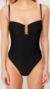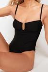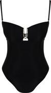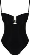 Kadın Moda Atma Kap Askılı Brief Yaka Siyah Straplez Aksesuarlı High Leg Regular Mayo