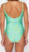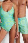 Kadın moda atma kap askılı brief yaka soyut desenli tünelli regular mayo
