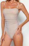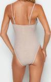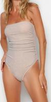 Kadın moda atma kap kolsuz slip yaka pembe straplez drapeli simli high leg regular mayo