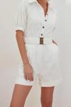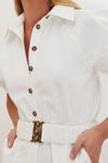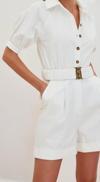 Kadın Moda Balon Kol Boru Paça Gömlek Yaka Kısa Kemerli Gömlek Yaka Gabardin Mini Dokuma Tulum