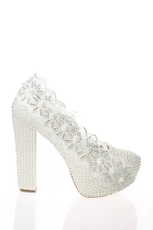 PayBuy Kadın Moda Beyaz Sedef Inci Taş Işlemeli Gelin Ayakkabı Topuklu Düğün Nişan Gece Abiye Ayakkabı
