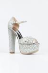 PayBuy Kadın Moda Gümüş Sultan Full Inci Taşlı Klasik Köşe Kalıplı Kalın Düğün Nişan Gece Abiye Ayakkabı