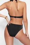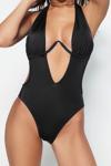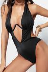 Kadın moda kapsız askılı derin v yaka siyah balkonet ters v balenli high leg brazilian mayokini