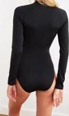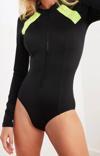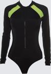 Kadın Moda Kapsız Uzun Brief Yaka Siyah Fermuarlı Uzun Kollu Hipster Sörf Mayosu