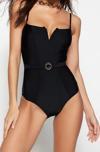 Kadın Moda Metraj Kap Askılı Straplez Yaka Siyah Kemerli Straplez Regular Mayo