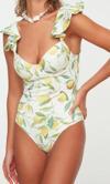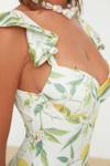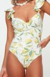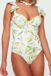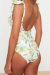 Kadın Moda Sabit Kap Askılı Brief Yaka Meyve Desenli Balkonet Fırfırlı Regular Mayo