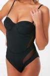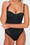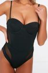 Kadın Moda Sabit Kap Askılı Brief Yaka Siyah Balkonet Mesh Detaylı Regular Mayo