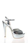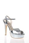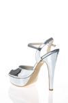 Zarif tasarımıyla dikkat çeken bu gümüş rengi abiye ayakkabı, 10 cm ve üzeri yüksek topuk boyu ile şıklığınızı tamamlar.