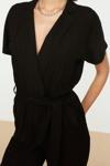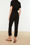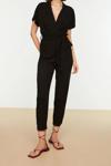 Kadın Moda Standart Kol Boru Paça Kruvaze Düz Desen Uzun Kuşaklı Dokuma Uzun Dökümlü Tulum