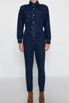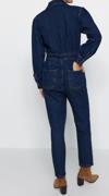 Kadın Moda Standart Kol Dar Paça Ceket Yaka Düz Desen Uzun Balon Kollu Denim Tulum