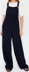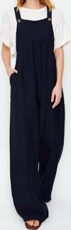 Ersefa Kadın Moda Standart Kol Geniş Paça Kare Yaka Uzun Jile Form Keten Görünümlü Bol Paça Dokuma Tulum