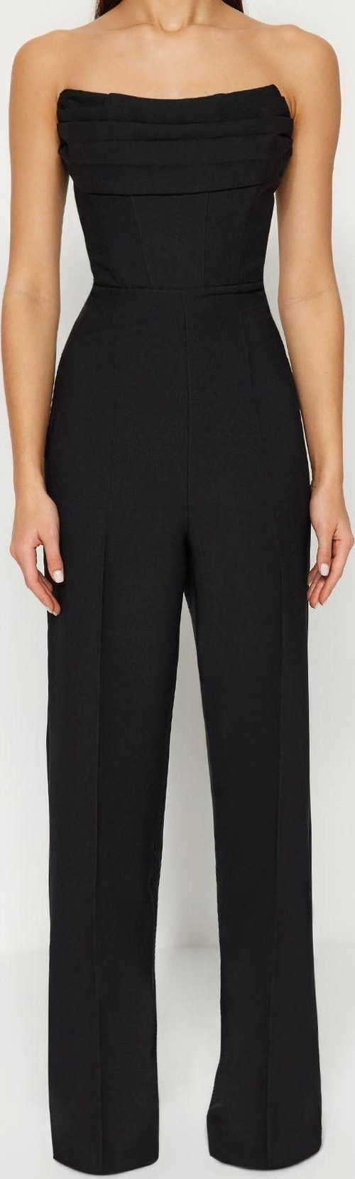 Kadın Moda Standart Kol Geniş Paça Straplez Düz Desen Regular Korse Detaylı Dokuma Tulum
