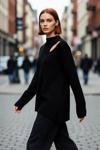 Kadın Modern Oversize Düşük Kol Siyah Akrilik Triko Kazak Cut Out Detaylı Günlük Şıklık Kaliteli