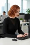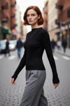 Özgün ve modern bir stil arayan kadınlar için tasarlanan bu siyah fitted triko kazak, vücuda oturan kalıbıyla çağdaş bir zarafet sunar. %100 akrilik materyalden üretilmiş olması sayesinde hem hafif hem de cilde nazik bir dokunuş sağlar, gün boyu konfor vadeden ideal bir seçenektir. Düz ve sade tasarımı, transparan V yaka detayıyla hareketlenerek ürüne sofistike bir derinlik katar. Klasik siyah rengi ise her türlü kombinle uyum sağlayarak gardırobunuzun temel parçalarından biri olmaya adaydır. Bu kazakla her ortamda dikkat çekici bir şıklık yakalayın.