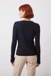 Ürün Özellikleri: Fitted kalıp, %100 akrilik materyal, düz desen, transparan V yaka, standart kol, triko kumaş, siyah renk.
