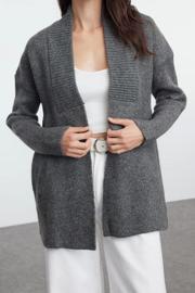 - - Kalıp:Oversize - Yaka Tipi:Şal Yaka - Kol Tipi:Standart Kol - Desen:Düz - Kumaş Tipi:Triko - Renk:Gri - Ürün Tipi:Düz - Kol Boyu:Uzun - Kalınlık:Kalın - Boy:Midi - Siluet:Basic - Ortam:Casual/Günlük - Persona:Cool & Comfort - Sürdürülebilirlik Detayı:Hayır - Dokuma Tipi:Tek Plaka - Materyal Bileşeni:75% Akrilik, ,3% Elastan, ,22% Polyester - Yıkama Talimatı:T41 - Yaş:Tüm Yaş Grupları -