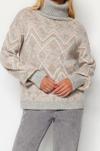 Kadın Modern Tarz Rahat Uzun Balıkçı Yaka Etnik Kol Regular Triko Kazak - Ürünümüz hem günlük şıklık hem de rahatlık arayanlar için mükemmel bir seçenek.