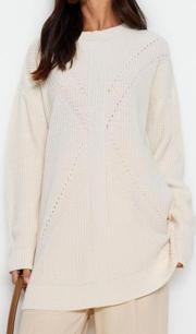 Kadın Modern Tarz Rahat Uzun Bisiklet Yaka Ajurlu Kol Regular Triko Kazak - Ürünümüz hem günlük şıklık hem de rahatlık arayanlar için mükemmel bir seçenek.