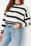 Kadın Modern Tarz Rahat Uzun Bisiklet Yaka Çizgili Kol Crop Triko Kazak - Ürünümüz hem günlük şıklık hem de rahatlık arayanlar için mükemmel bir seçenek.