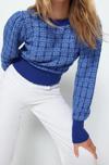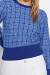 Kadın Triko Kazak Kolu Çizgili Saks Mavi - Image 1