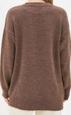 Hem kazak hem de hırka olarak kullanılabilen bu çok yönlü tasarım, V yakası ve düğmeli ön kısmı ile zarif bir görünüm sunar.
