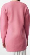 Hem kazak hem de hırka olarak kullanılabilen bu çok yönlü tasarım, V yakası ve düğmeli ön kısmı ile zarif bir görünüm sunar.