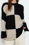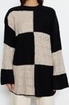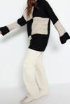 Ersefa Kadın Modern Tarz Rahat Uzun Bisiklet Yaka Renk Bloklu Kol Midi Triko Kazak