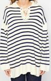 Kadın Modern Tarz Rahat Uzun Kare Yaka Çizgili Kol Regular Triko Kazak - Ürünümüz hem günlük şıklık hem de rahatlık arayanlar için mükemmel bir seçenek.