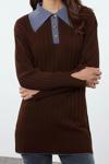 - - Kalıp:Fitted - Yaka Tipi:Polo Yaka - Kumaş Tipi:Triko - Kol Tipi:Düşük Kol - Desen:Dokulu - Renk:Kahverengi - Koleksiyon:Tesettür Giyim - Kol Boyu:Uzun - Ürün Detayı:Yarım Patlı - Dokuma Tipi:Ribana/Kaşkorse - Siluet:Basic - Boy:Regular - Persona:Cool & Comfort - Ortam:Casual/Günlük - Sürdürülebilirlik Detayı:Hayır - Materyal Bileşeni:100% Akrilik - Yıkama Talimatı:T41 - Yaş:Tüm Yaş Grupları -