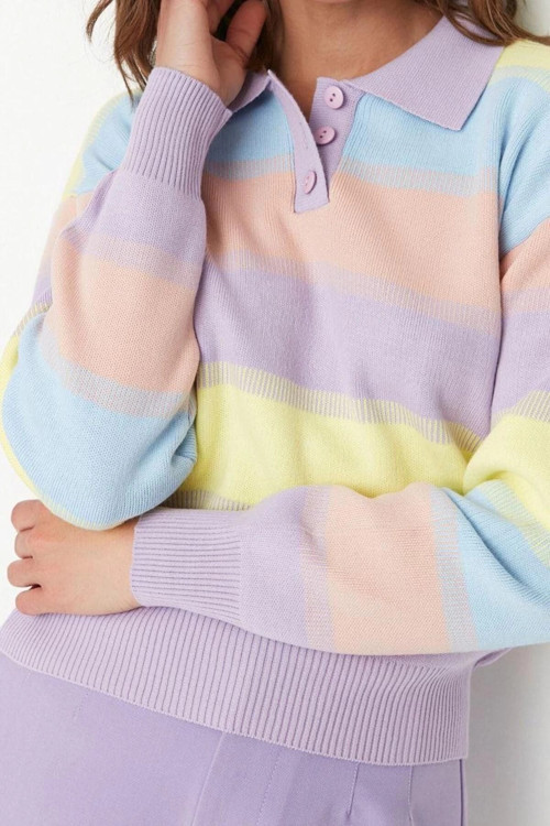 Kadın Modern Tarz Rahat Uzun Polo Yaka Renk Bloklu Kol Regular Triko Kazak - Ürünümüz hem günlük şıklık hem de rahatlık arayanlar için mükemmel bir seçenek.