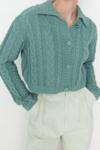 Kadın Modern Tarz Rahat Uzun Polo Yaka Saç Örgü Kol Crop Triko Hırka - Ürünümüz hem günlük şıklık hem de rahatlık arayanlar için mükemmel bir seçenek.