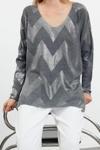 Kadın Modern Tarz Rahat Uzun V Yaka Baskılı Kol Regular Triko Kazak - Ürünümüz hem günlük şıklık hem de rahatlık arayanlar için mükemmel bir seçenek.