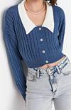 Kadın Modern Tarz Regular Bebe Yaka Crop Triko Hırka - Ürünümüz hem şıklık hem de rahatlık arayan kadınlar için ideal bir tercihtir.