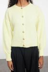 Sempre Kadın İnci Düğmeli Polo Yaka Simli Yün Hırka 2558 Fildişi
