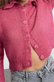 Kadın Modern Tarz Regular Dik Yaka Crop Triko Hırka - Ürünümüz hem şıklık hem de rahatlık arayan kadınlar için ideal bir tercihtir.