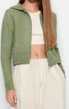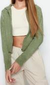 Kadın Modern Tarz Regular Kapüşonlu Crop Triko Hırka - Ürünümüz hem şıklık hem de rahatlık arayan kadınlar için ideal bir tercihtir.