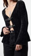 Kazax Küçük düğmeli küçük örgülü triko hırka siyah