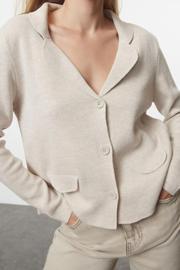 Kadın Modern Tarz Slim Ceket Yaka Regular Triko Hırka - Ürünümüz hem şıklık hem de rahatlık arayan kadınlar için ideal bir tercihtir.