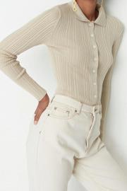 Kadın Modern Tarz Slim Polo Yaka Regular Triko Hırka - Ürünümüz hem şıklık hem de rahatlık arayan kadınlar için ideal bir tercihtir.