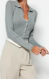 Kadın Modern Tarz Slim Polo Yaka Regular Triko Hırka - Ürünümüz hem şıklık hem de rahatlık arayan kadınlar için ideal bir tercihtir.