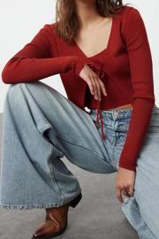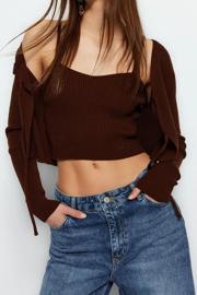 Kadın Modern Tarz Slim V Yaka Crop Triko Takım - Ürünümüz hem şıklık hem de rahatlık arayan kadınlar için ideal bir tercihtir.