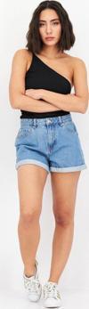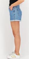 Kadın Mom Fit Yüksek Bel Kot Şort, Mavi