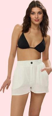 PayBuy Kadın Müslin Cepli Mini Plaj Şort Relaxed Kalıp Pamuk Yaz Aylarının Vazgeçilmezi Günlük Kullanım