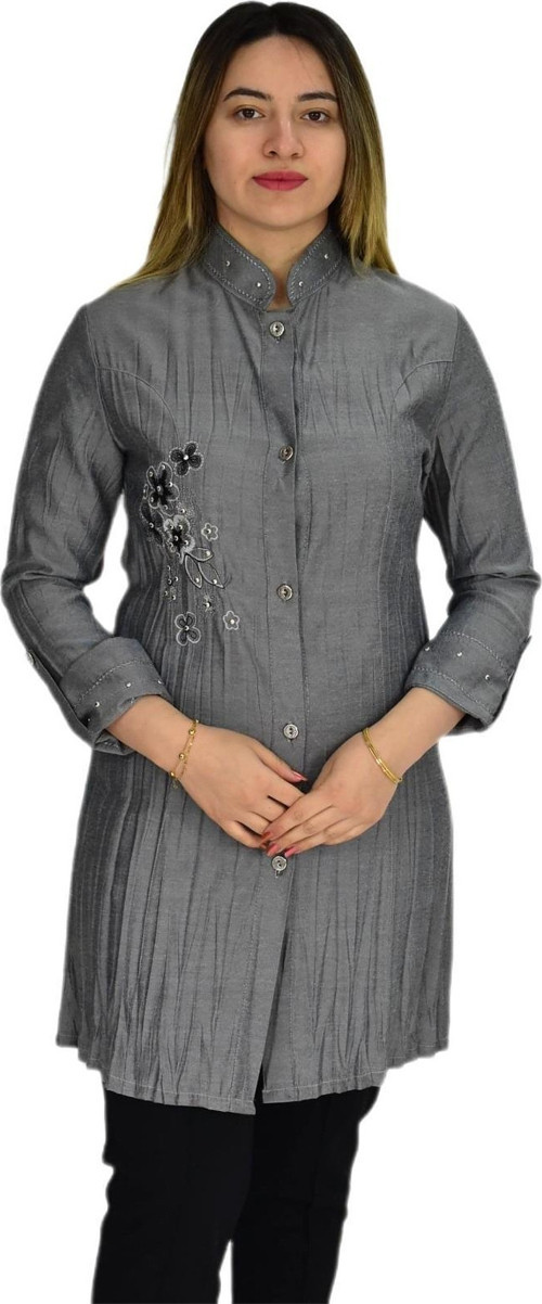 Kadın Nakışlı Hakim Yaka Tunik JNS-3004 Kumaş Karışım:% 60 Pamuk Kumaş Karışım:% 40 Polyester Manken Boy:1.65 Cm Kilo:65 Kg Manken Bedeni:40