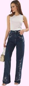 Stil sahibi kadınlar için tasarlanmış bu mavi jean pantolon, benzersiz nakış detaylarıyla dikkat çekiyor. Yüksek kaliteli %100 pamuk kumaştan üretilen pantolon, gün boyu rahatlık ve konfor sunuyor. Yüksek beli, vücudunuzu şekillendirirken, geniş paçası da modern ve şık bir görünüm sağlıyor. Rahat kalıbı sayesinde hareket özgürlüğünüzü kısıtlamadan gün boyunca şık kalabilirsiniz.